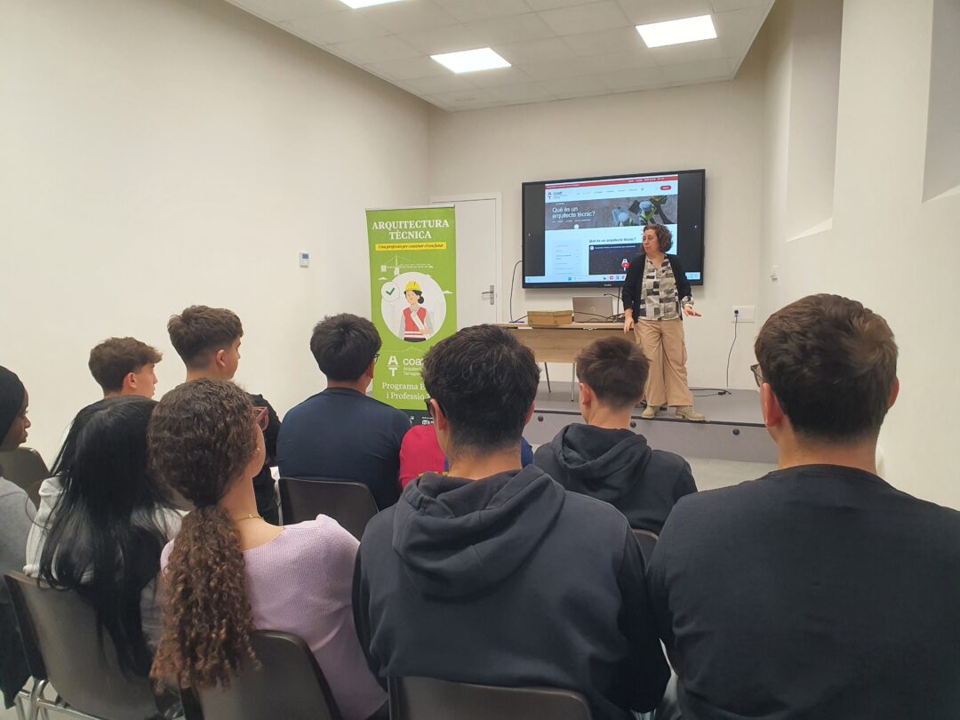 D’altra banda, els alumnes de 4t d’ESO han assistit a una xerrada introductòria sobre l’arquitectura tècnica i les múltiples sortides professionals que ofereix aquest àmbit. Gispert ha explicat que aquesta formació obre la porta a oportunitats laborals tant en el sector públic com en el privat, amb exemples com la direcció i gestió d’obres, els projectes de rehabilitació, la consultoria i auditoria, l’administració pública, així com la docència i la investigació.